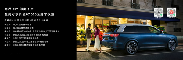 首搭896线激光雷达!尊界S800、问界M9今启预定:72.8万元、47.98万元起